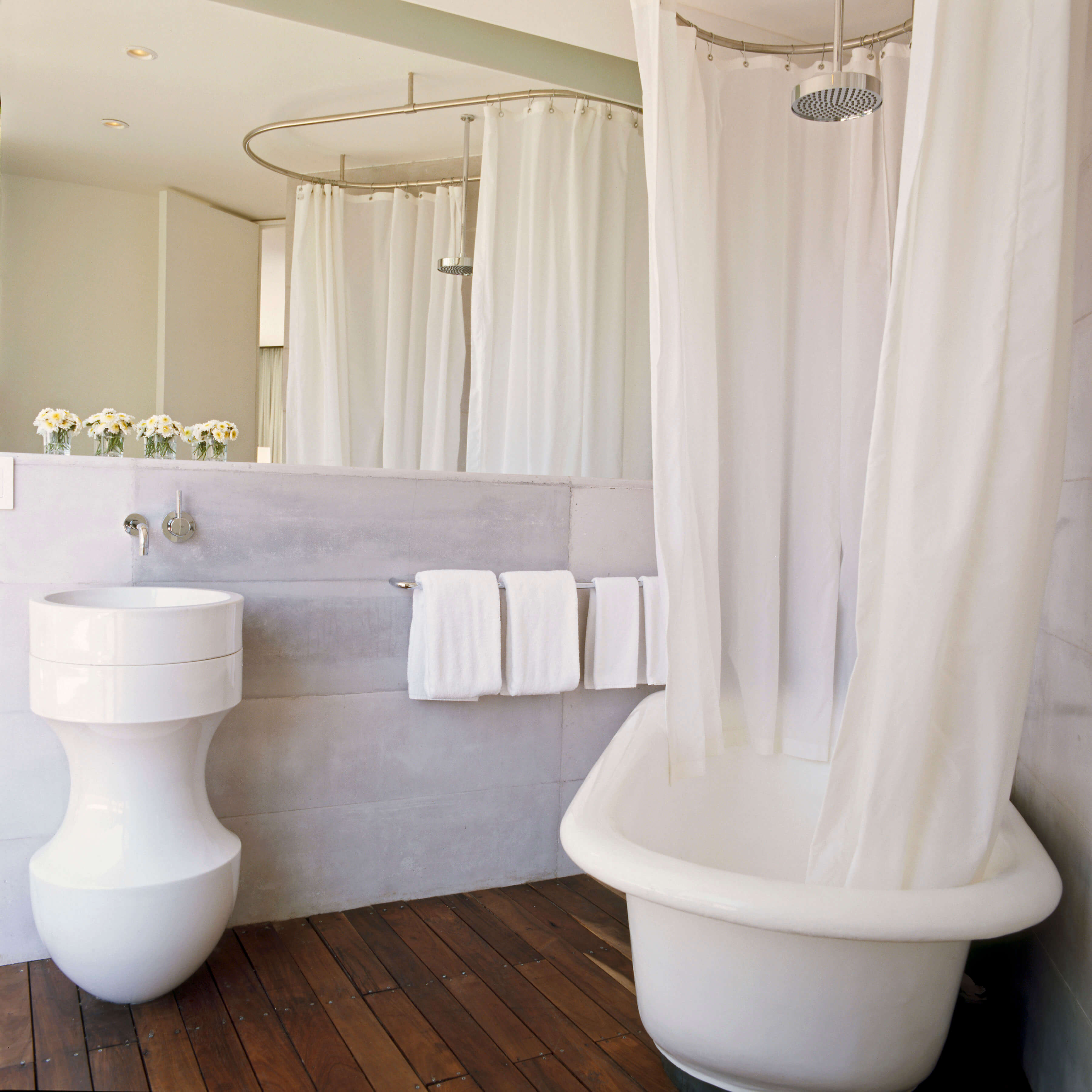 De estilo moderno, pero al mismo tiempo cálido, elegante, pero sin pretensiones, las 40 habitaciones y suites se inspiraron, sin renunciar a la comodidad, en la simplicidad de los dormitorios monásticos Meta.02 de Dornbracht se acopló a estas combinaciones, garantizando una longevidad estética.